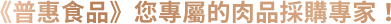 普惠食品企業股份有限公司於1985年成立至今,致力於提供臺灣食品業者來自於全球的優質牛肉、豬肉、雞肉、火雞肉品與海鮮,肉品批發與肉品加工分切服務,最多元最專業的肉品進口商與批發商。